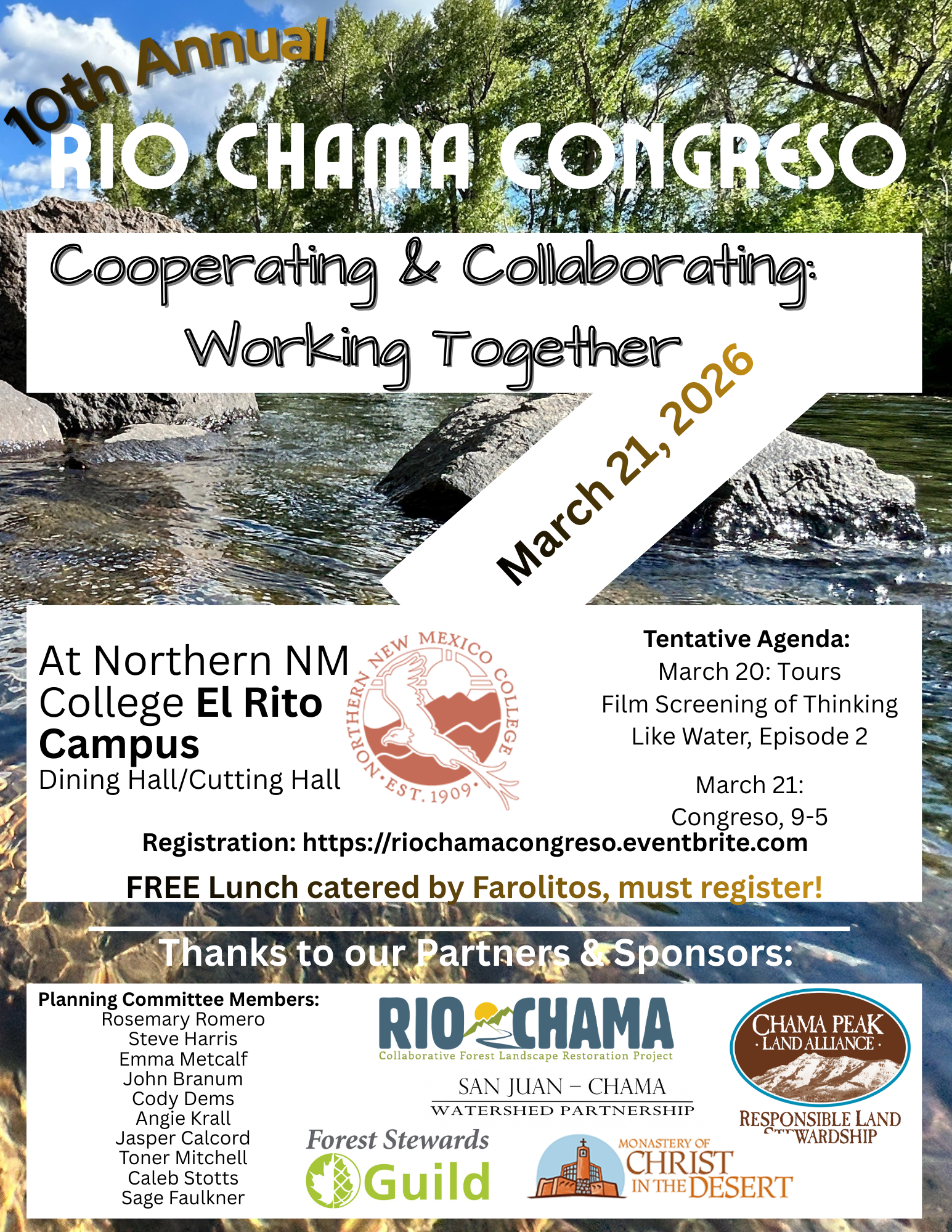The Congreso will explore stories of the Hermits Peak/Calf Canyon Fire, wildfire risk models, and collaborative efforts to mitigate and prevent catastrophic post-fire impacts.